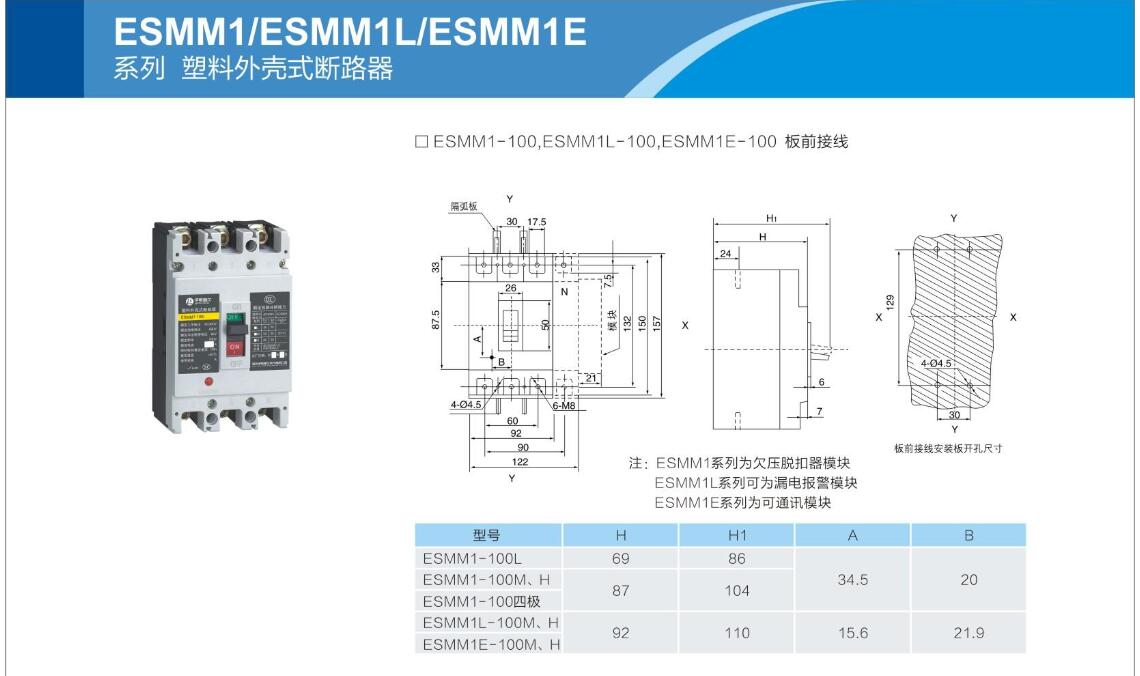 ESMM1/ESMM1L/ESMM1E系列塑料外殼式斷路器